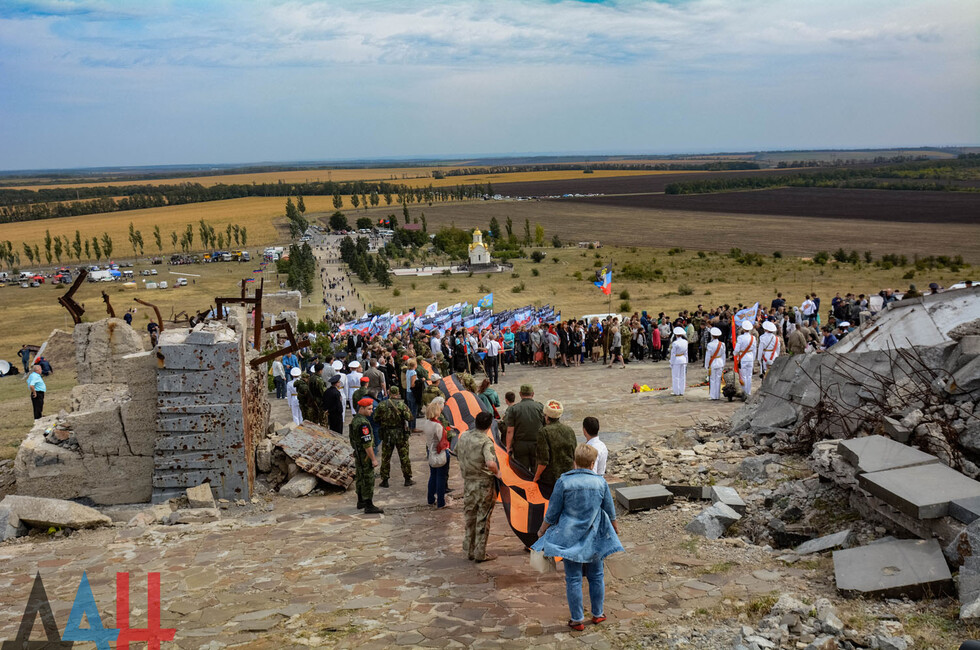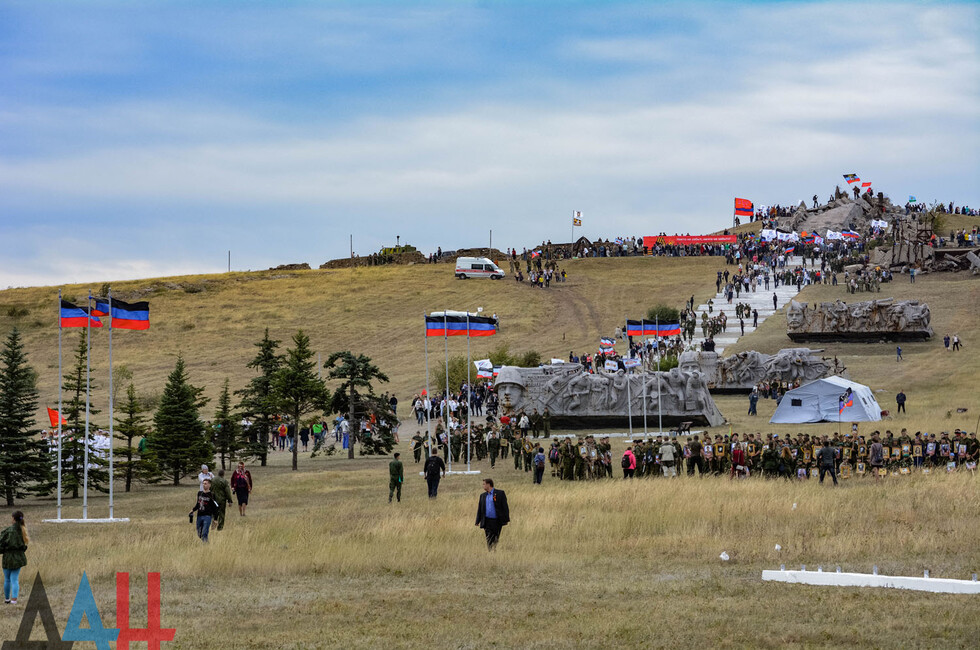 Саур-Могила (Шахтерский район), 7 сен – корр. ДАН. Торжественные мероприятия по случаю 75-й годовщины освобождения Донбасса прошли сегодня на территории мемориального комплекса «Саур-Могила» вблизи города Шахтерск на востоке Донецкой Народной Республики. В них приняли участие порядка 5000 человек.