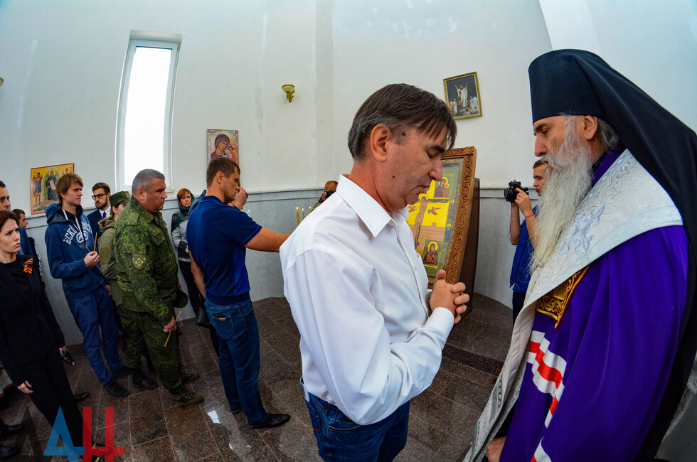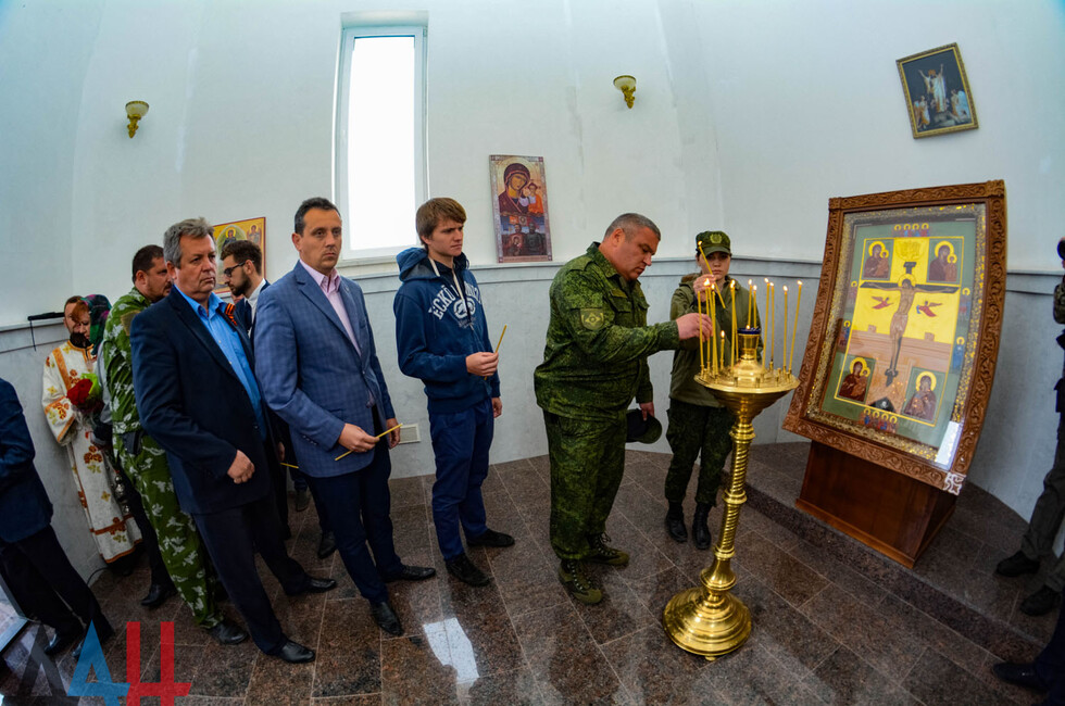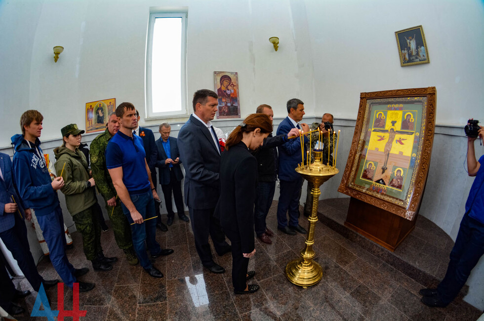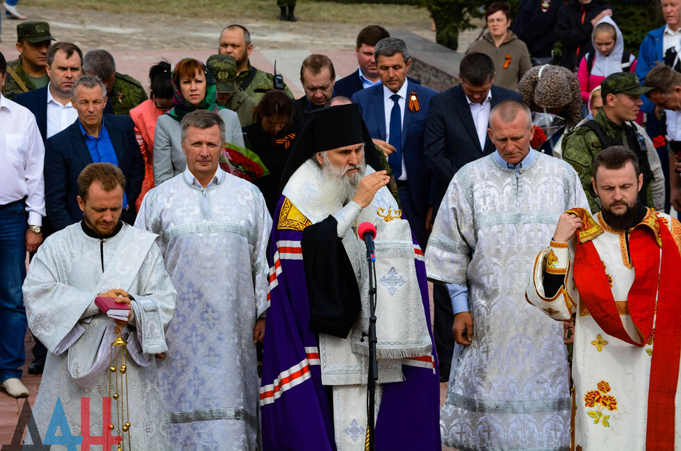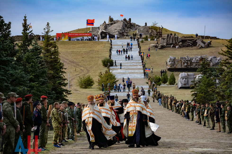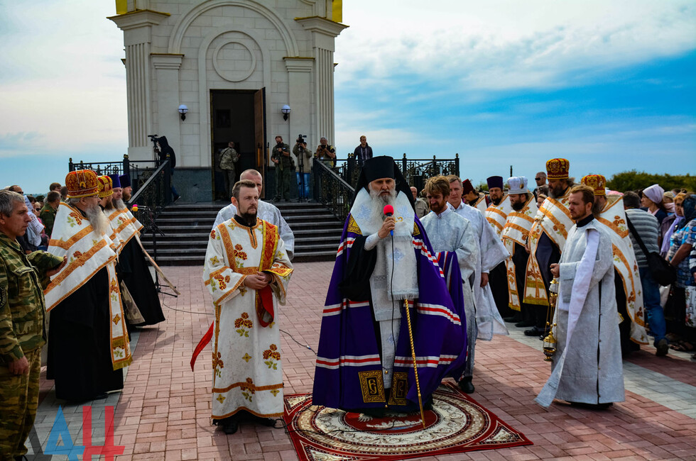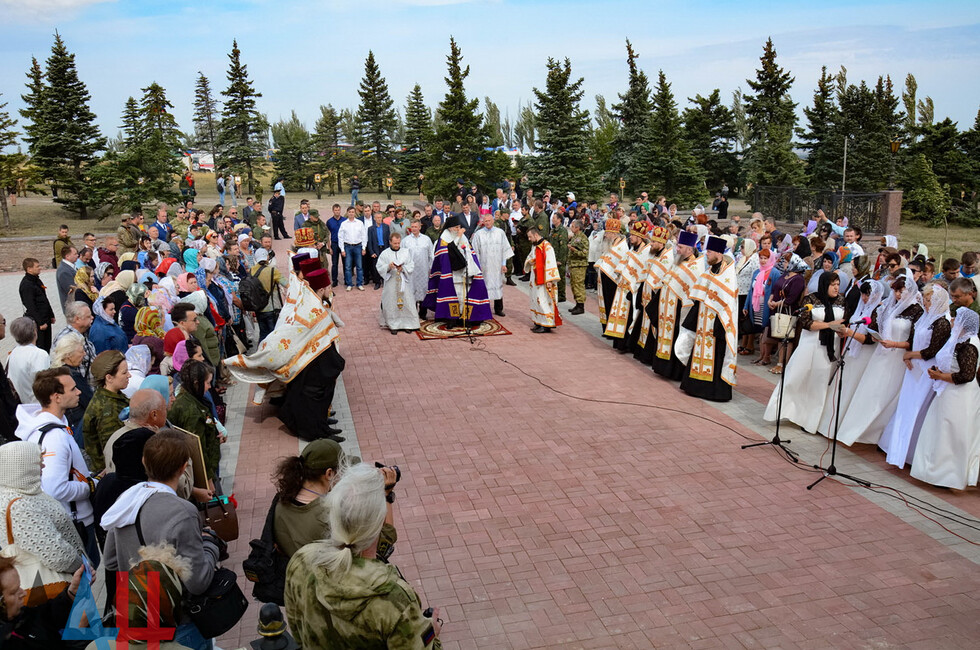Викарий Донецкой епархии епископ Новоазовский Варсонофий провел богослужение в часовне святого Александра, которая находится у подножия легендарного кургана. Затем почетные гости прошли в часовню и поставили свечи в память о всех павших воинах.