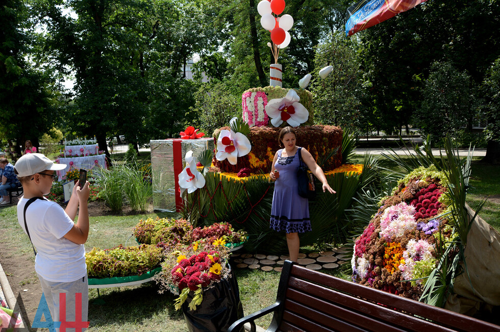 Между тем на бульваре Пушкина с полудня проходит выставка цветочных композиций, где свои работы представили районы города. Там же организована театрализованная программа для детей.