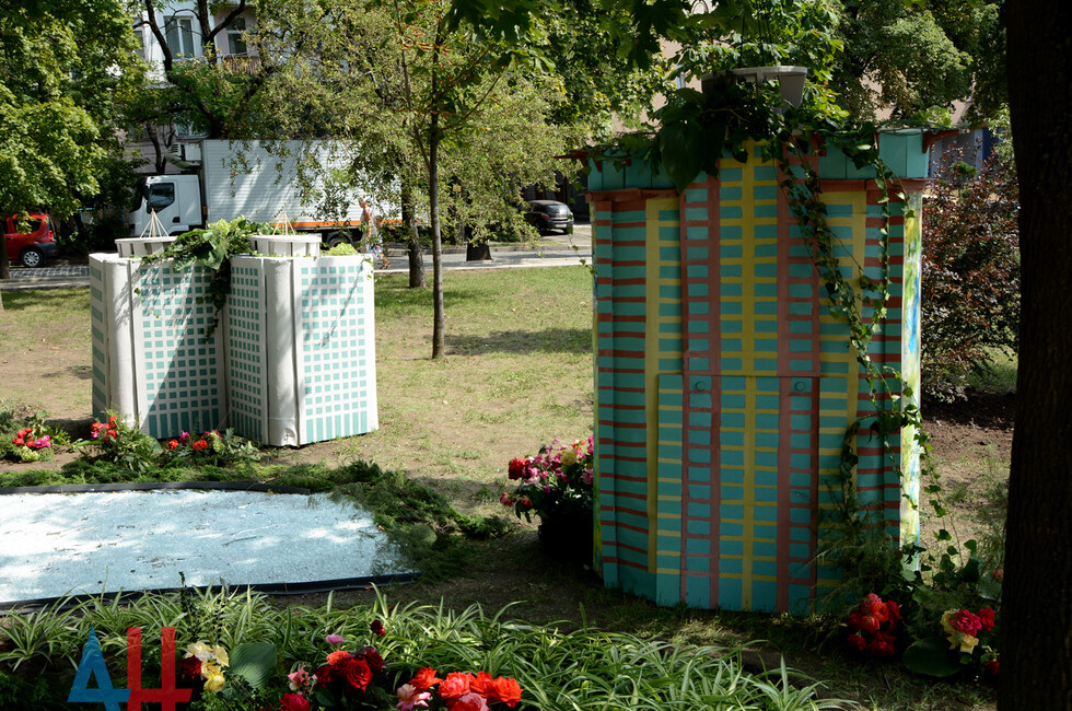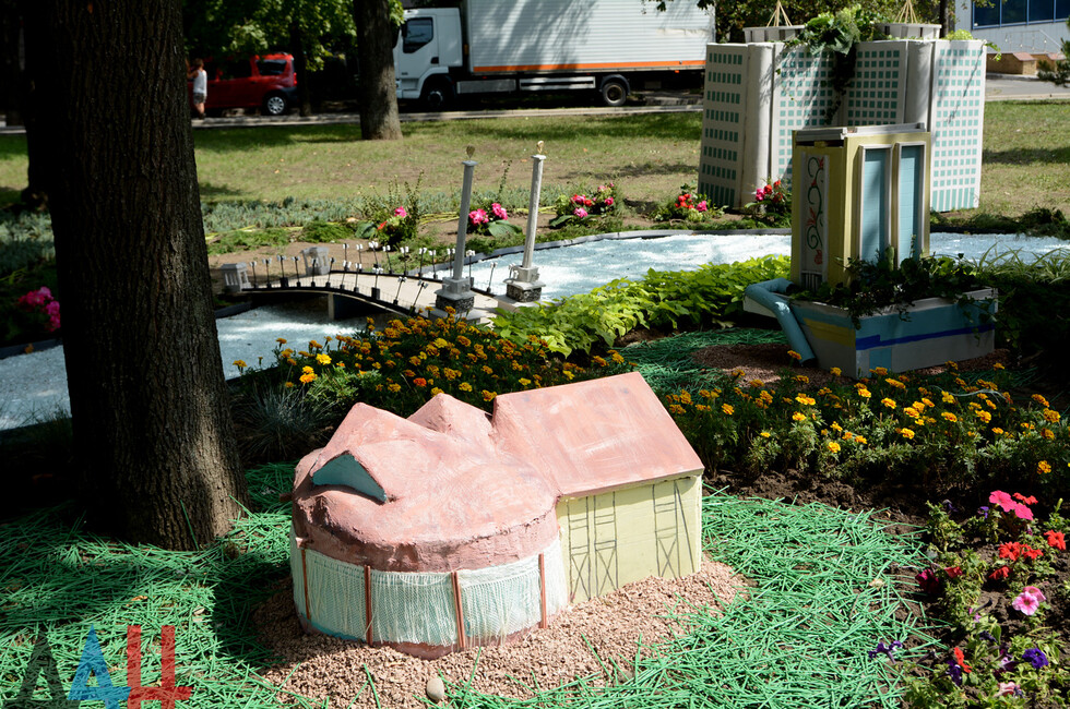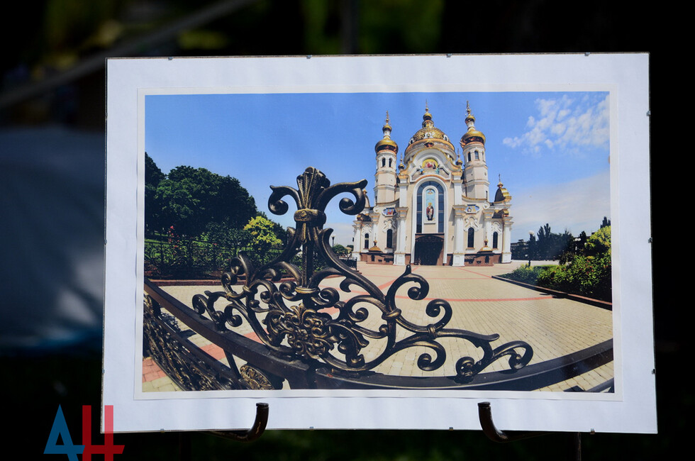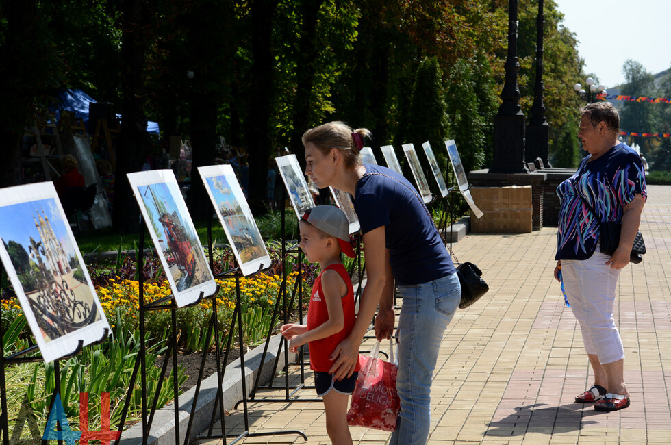 Посетители парка могут увидеть также выставку фоторабот, посвященных Донецку, или сделать памятный снимок у фотозон к юбилею города.