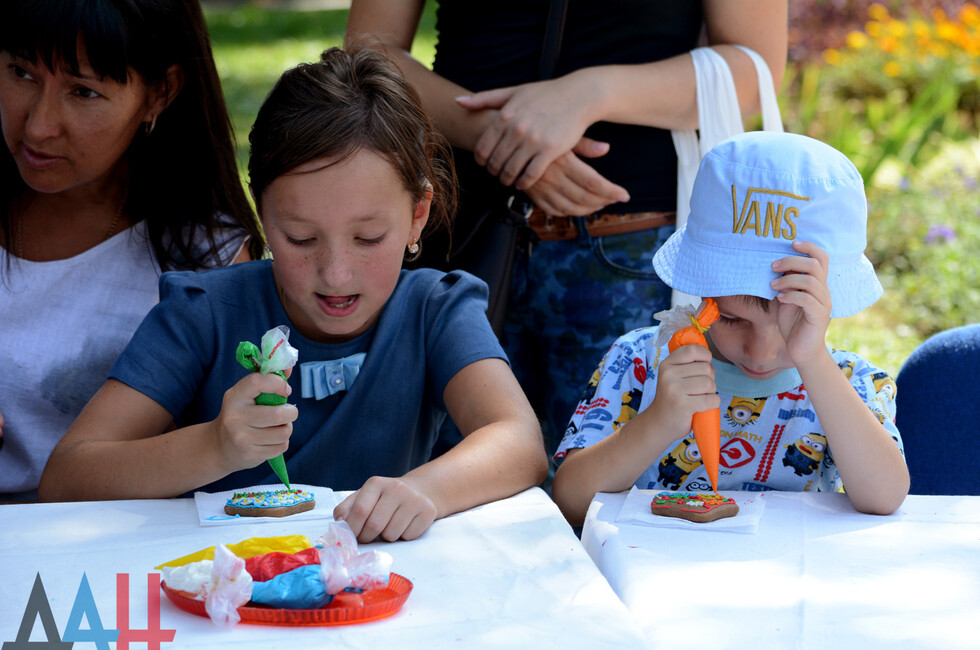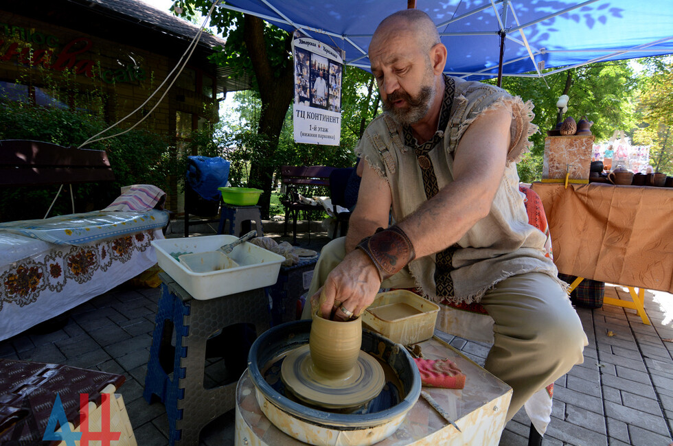 Дети смогли проявить свои таланты в конкурсе рисунков на асфальте, поучаствовать в мастер-классе донецких гончаров и сделать посуду или поделку из глины.