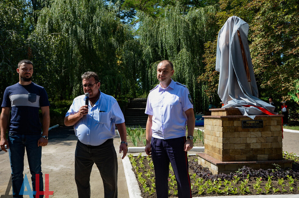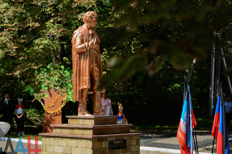 Донецк, 25 авг – ДАН. Торжественное открытие памятника великому русскому поэту Александру Пушкину состоялось сегодня у одноименного дворца культуры в Буденновском районе Донецка по случаю 150-летия со дня основания города.