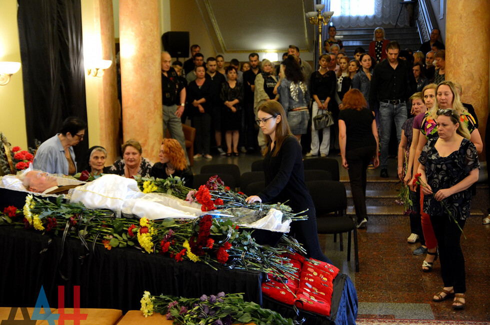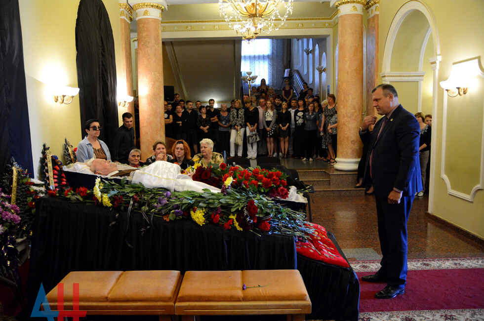 В частности, на церемонии прощания присутствовали: генеральный директор - художественный руководитель муздрамы Наталья Волкова, ее заместитель, режиссер Василий Маслий, председатель Народного Совета Владимир Бидёвка, глава администрации Донецка Алексей Кулемзин, заместитель начальника Управления Народной милиции Республики Эдуард Басурин и другие.
