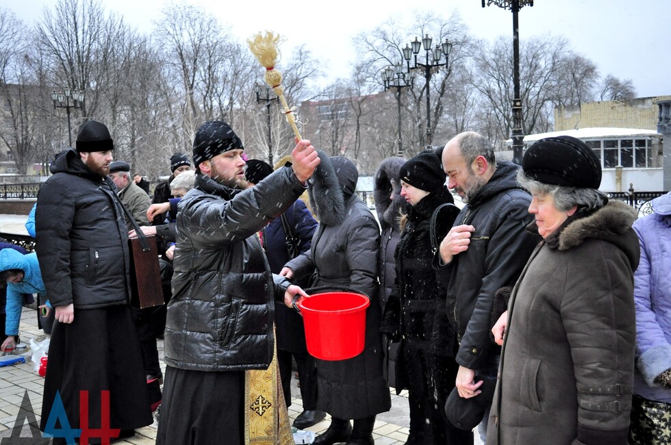 Донецк, 19 янв - ДАН. Православные верующие ДНР встретили Крещение Господне в храмах Республики и у специально подготовленных к празднику купелей.