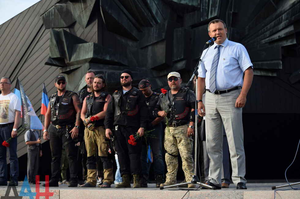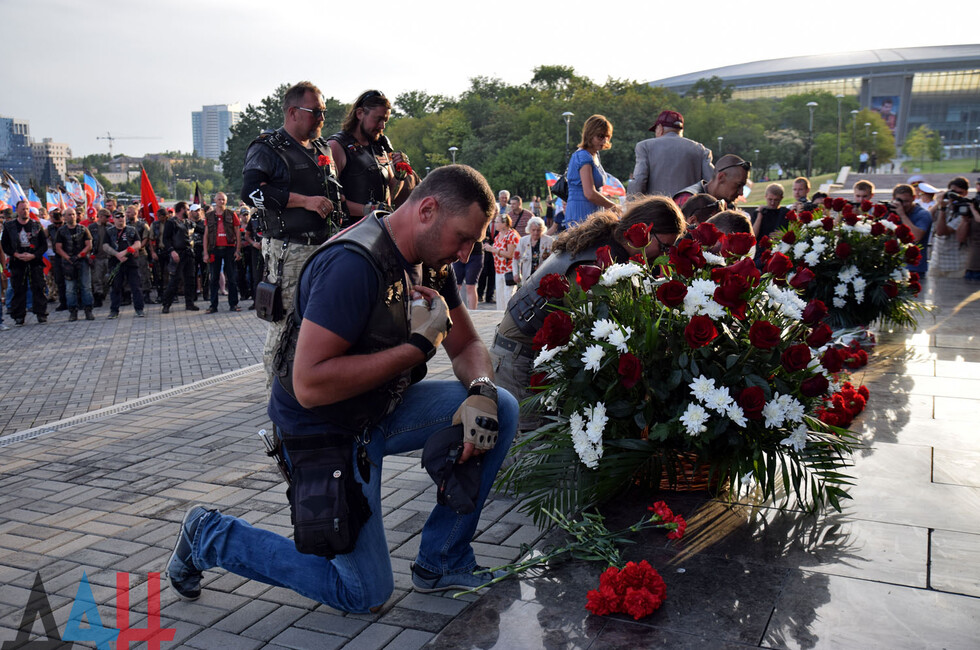В своей речи Кишкинов также рассказал жителям Донбасса о самом движении. В конце митинга участники возложили цветы к монументу «Твоим освободителям, Донбасс». После завершения торжественной части, лидер ДНР пообщался с «Ночными волками».