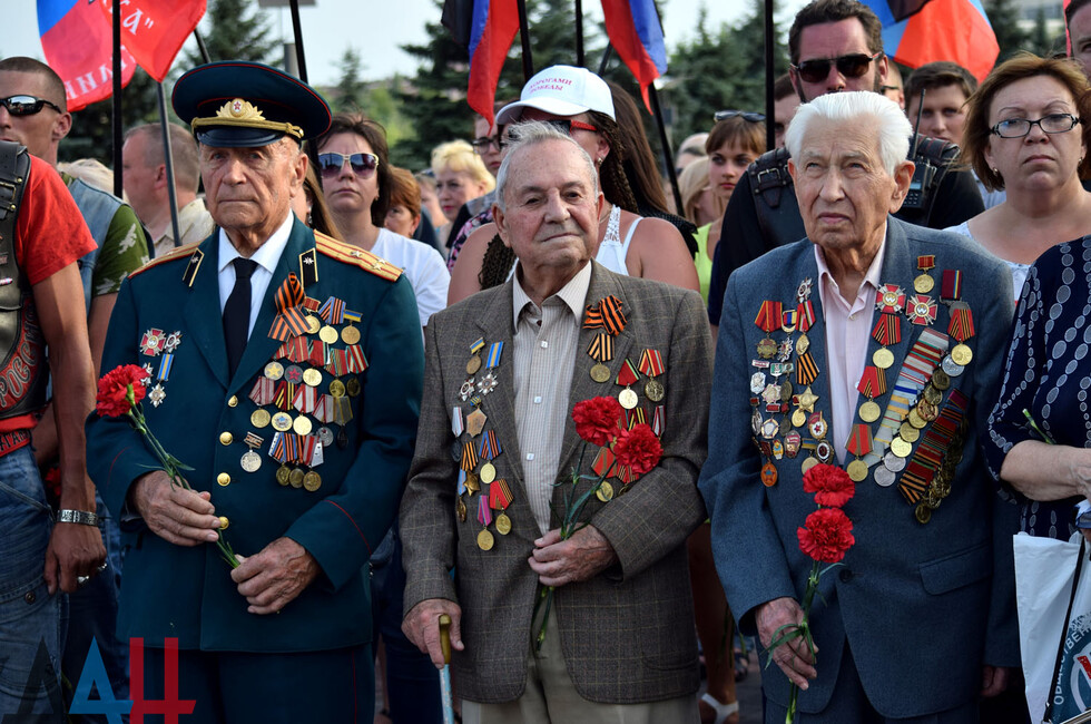 Донецк, 15 авг – корр. ДАН. Митинг, посвященный вечной памяти героев Великой Отечественной войны, прошел сегодня у монумента «Твоим освободителям, Донбасс» в центре столицы ДНР. Мероприятие объединило несколько сотен жителей и гостей Донецка.