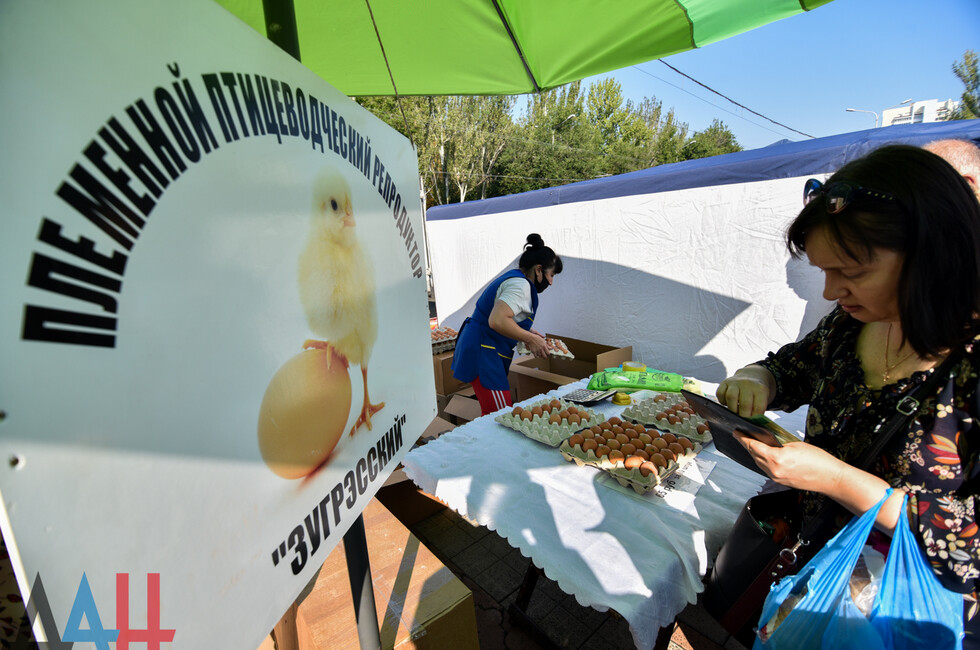 Сегодня в столице Республики проходит продовольственная ярмарка с участием отечественных товаропроизводителей, где жители и гости города могут без торговой наценки приобрести кондитерские, хлебобулочные изделия, муку и крупы, рыбную и молочную продукцию, яйца, колбасные изделия, а также овощи, фрукты, бахчевые и продукты пчеловодства. Торговля продлится до 14:00 на площадке перед входом в РСК «Олимпийский» на улице Артема. Организатор мероприятия – министерство агропромышленной политики и продовольствия ДНР. *лв*нк