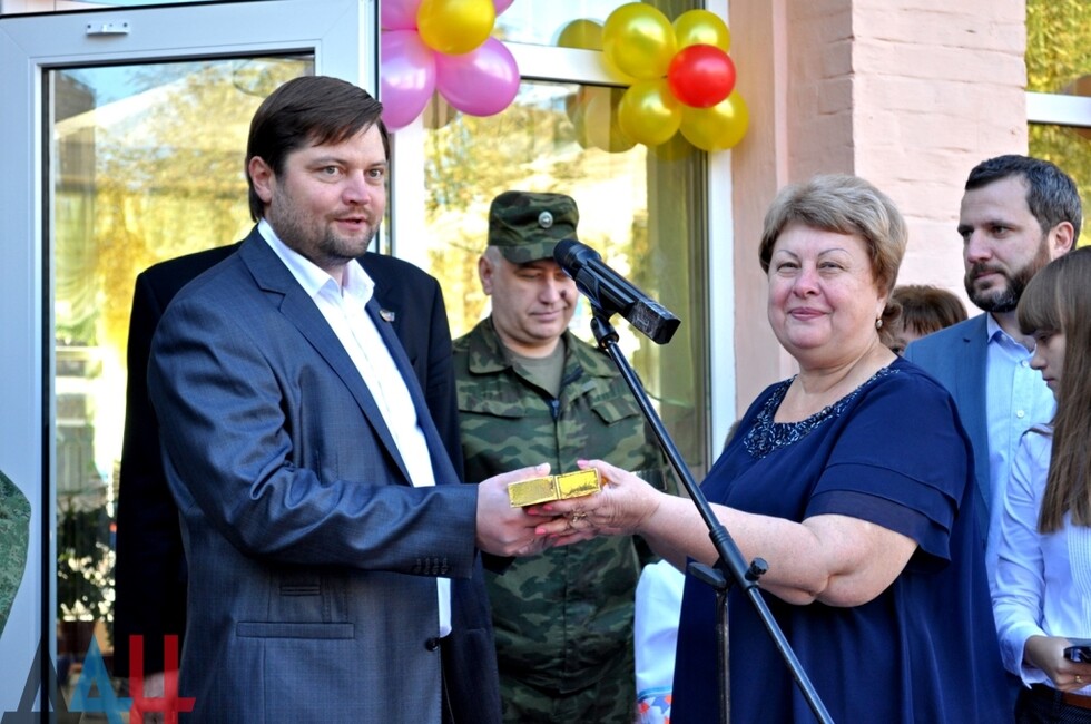 В торжественной церемонии открытия приняли участие также глава администрации Горловки Роман Храменков, руководство и педагогический коллектив учебного заведения, школьники и родители. Всего собралось около 400 человек.