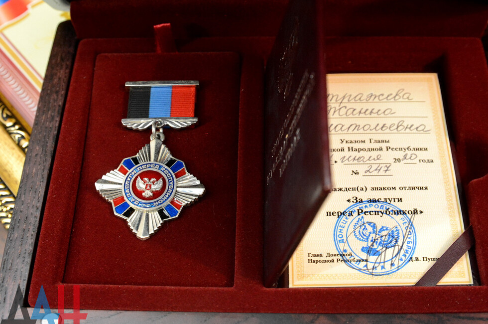 Награждение проходило в местном доме культуры и творчества. Глава ДНР вручил знак отличия «За заслуги перед Республикой», две медали «За трудовую доблесть» и четыре благодарности.
