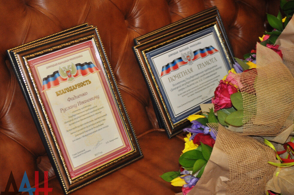 Захарченко вручил Марченко и Шайдеру нагрудные знаки и удостоверения Заслуженных артистов ДНР. Кроме того, почетной грамотой Главы ДНР были награждены коллектив «Донбасс Оперы», главный хормейстер Донецкой муздрамы Татьяна Пащук и актер-кукловод театра кукол Роман Крылов. Еще трое сотрудников театров Республики получили благодарности.