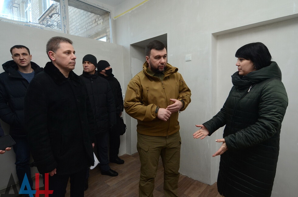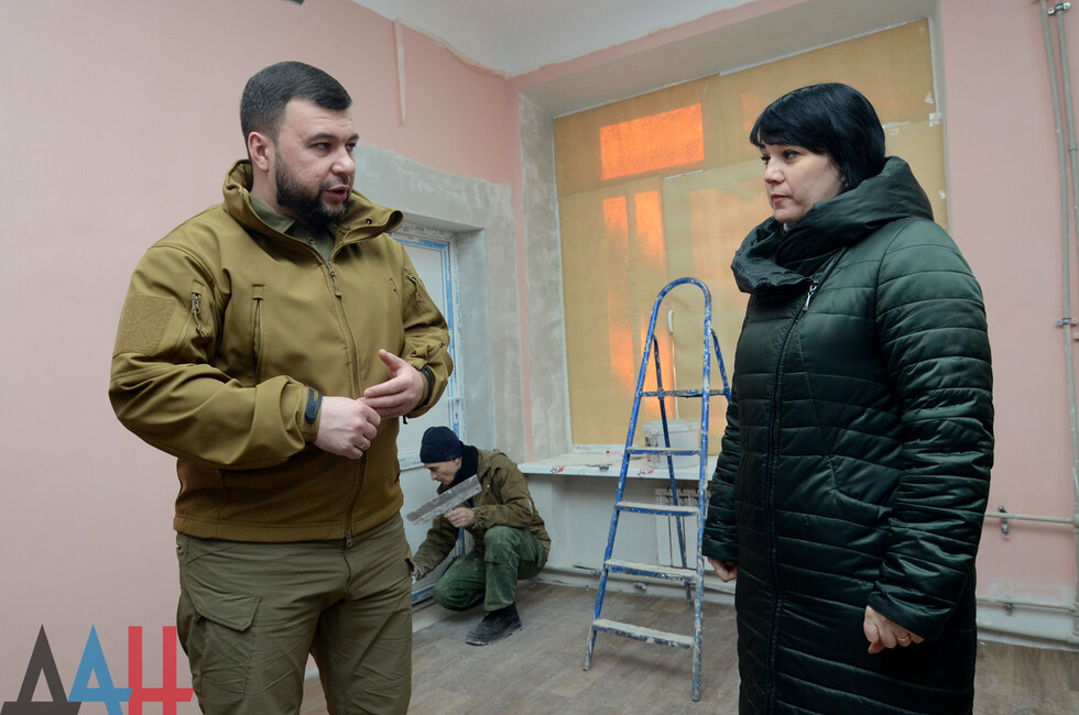 Тельманово, 13 фев – корр. ДАН. Восстановление поврежденного боями дома детского и юношеского творчества в Тельмановском районе на юге ДНР завершится к апрелю. Глава Республики Денис Пушилин сегодня лично ознакомился с ходом ремонтных работ.
