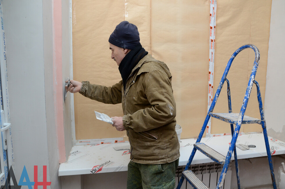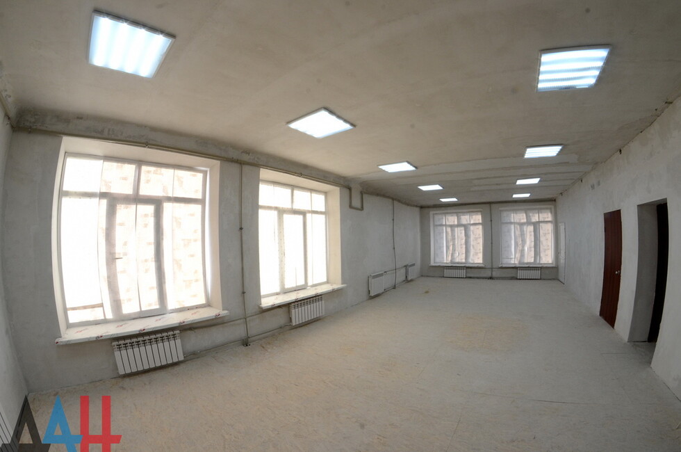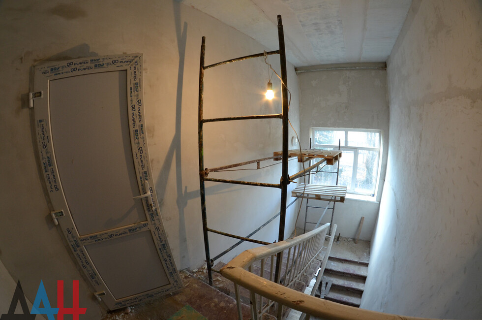 По словам директора учреждения Ирины Ермолаевой, здание было повреждено обстрелами в ноябре-декабре 2014 года. Были выбиты стекла, повреждена кровля, от морозов вышла из строя система отопления. К восстановлению приступили в 2017 году, новый этап ремонтных работ начался в сентябре прошлого года. На данный момент в здании идет замена всех инженерных коммуникаций, проводится внутренняя и внешняя отделка. По данным подрядчика, объект планируется сдать к концу марта.