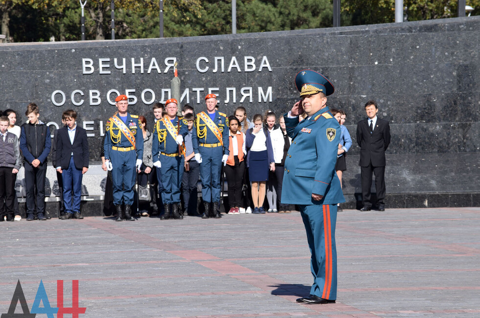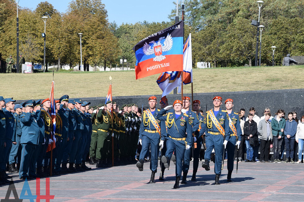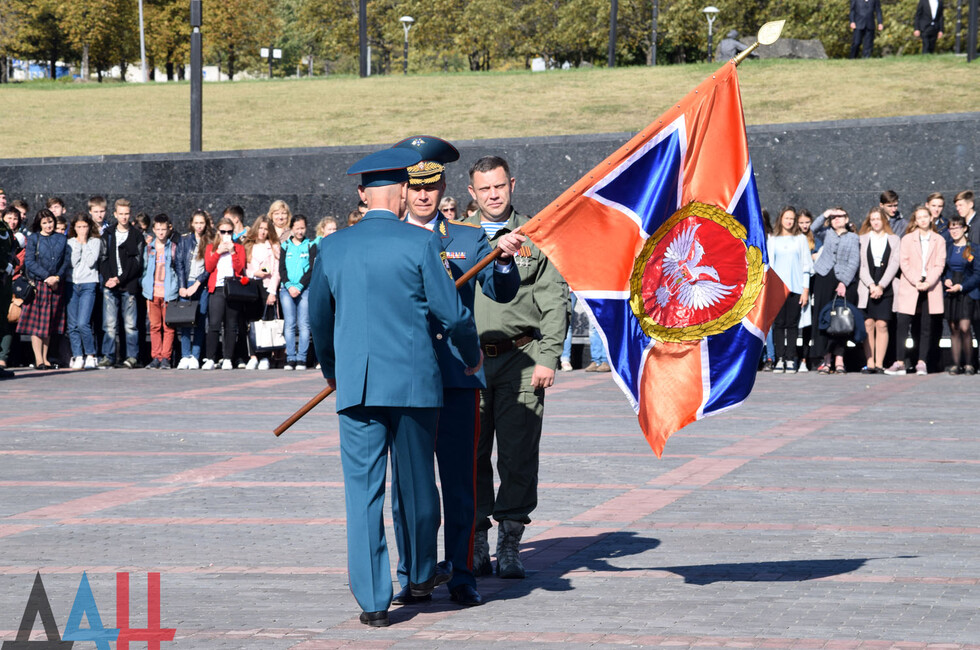 Напомним, что накануне днем в Донецке состоялась презентация знамени Академии гражданской защиты МЧС ДНР. Торжественное мероприятие состоялось во Дворце культуры имени Куйбышева. *аа*мк*дя
