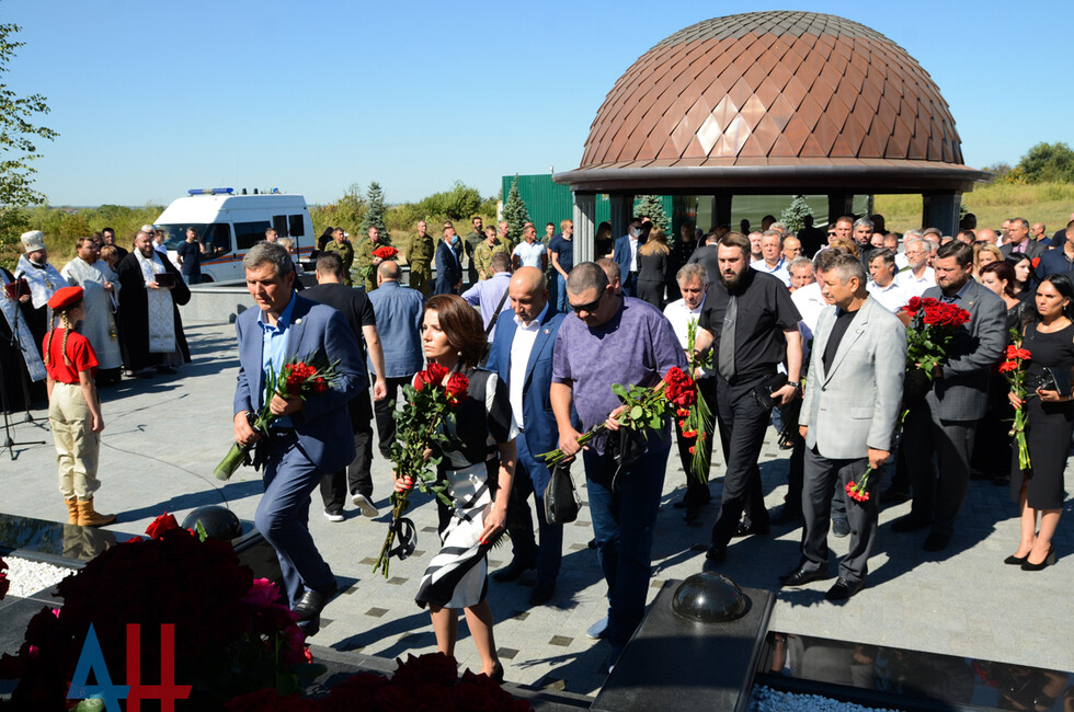Почтить память Захарченко пришли Глава ДНР Денис Пушилин, председатель Народного Совета Республики Владимир Бидёвка, министры и депутаты, представители местных властей, родители – Тамара и Владимир Захарченко, вдова Наталья, сослуживцы. Всего около 300 человек.
