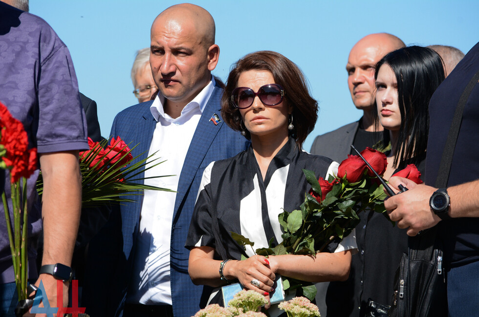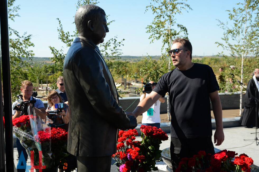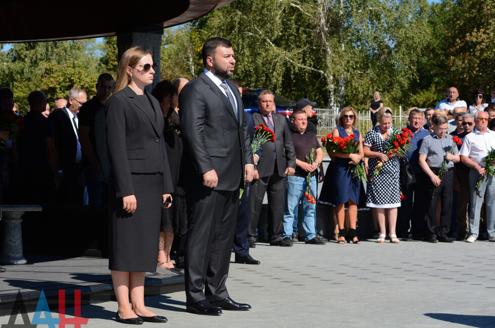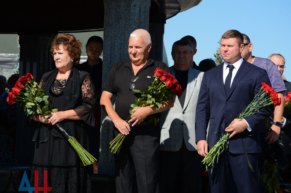 В завершение траурного митинга Пушилин вместе со вдовой Захарченко и его родителями возложили цветы к памятнику первому Главе. За ними к церемонии присоединились все присутствующие. В итоге вся могила была устлана розами и гвоздиками.