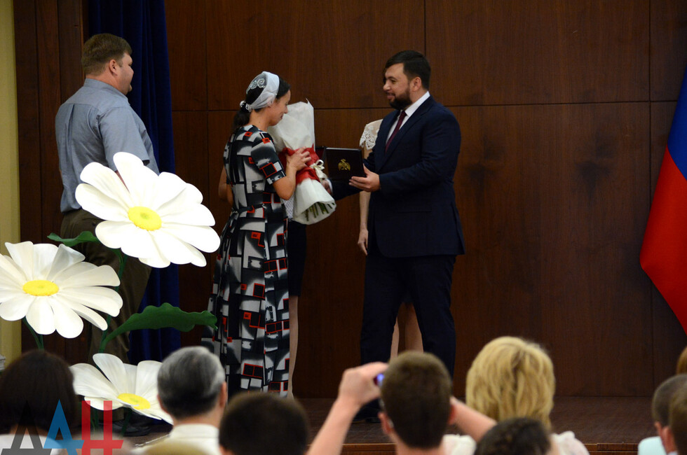 Донецк, 9 июл - ДАН. Глава ДНР Денис Пушилин вручил государственные награды жителям, которые добились исключительных успехов в воспитании пяти и более детей. Церемония награждения прошла сегодня в столичном гостиничном комплексе «Shachtar Plaza».
