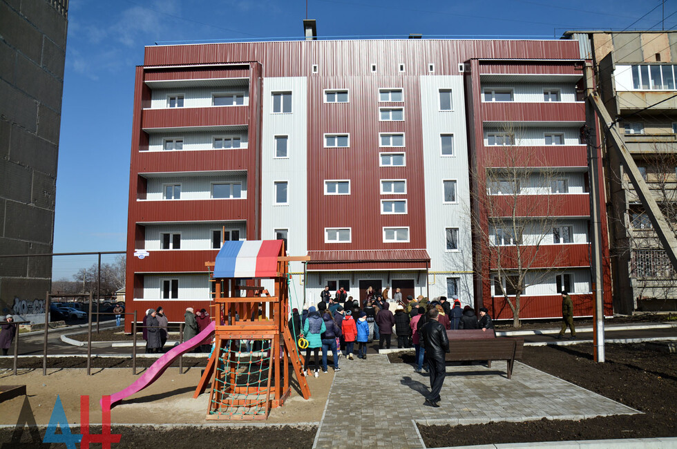 Пятиэтажное здание расположено по улице Третьякова. Всего к заселению здесь готовы 20 квартир: по четыре «однушки» и четырехкомнатных, по шесть двух- и трехкомнатных. Двенадцать квартир предназначены для временного размещения семей – до восстановления их жилья. Руководитель ДНР вручил ордеры и ключи владельцам, а затем вместе с и.о. главы администрации Енакиево Дмитрием Лысенко и новоселами осмотрел квартиры.