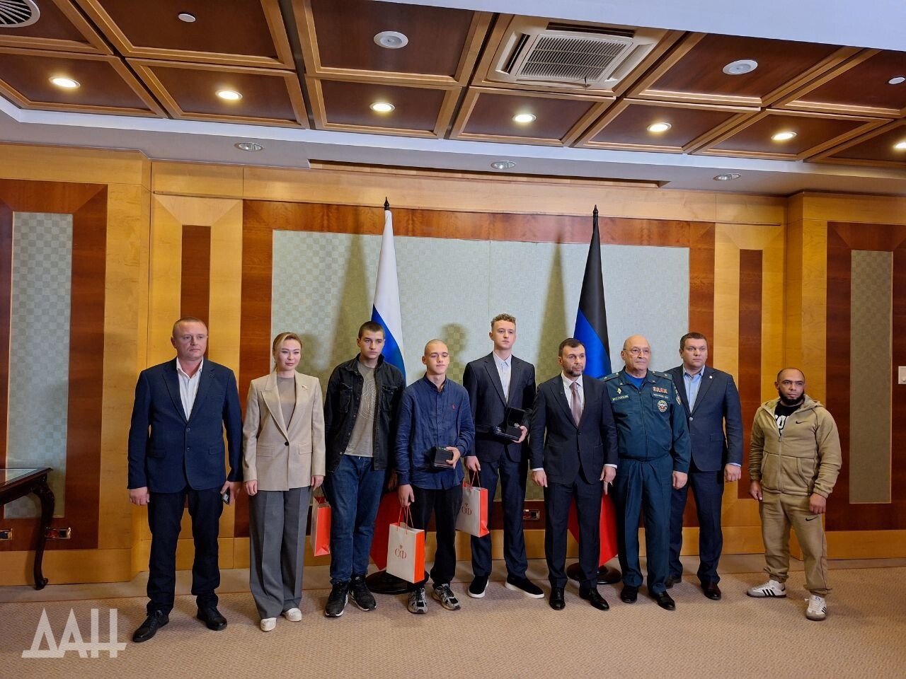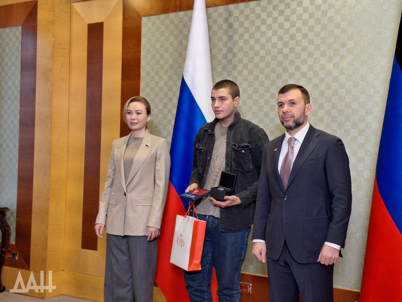 Он добавил, что на недавней церемонии награждения детей-героев, которая прошла в Совете Федерации, был отмечен подросток из Украинска, который помогал людям, оказавшимся в подожженном ВСУ доме. В числе награжденных сегодня — ученики макеевской школы №101 Александр Маршал и Александр Скакун, которые спасли пожилого человека в прошлом ноябре.