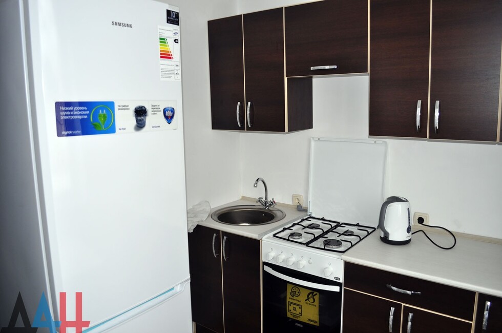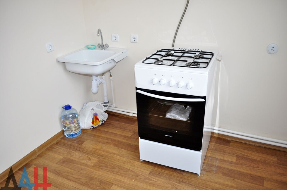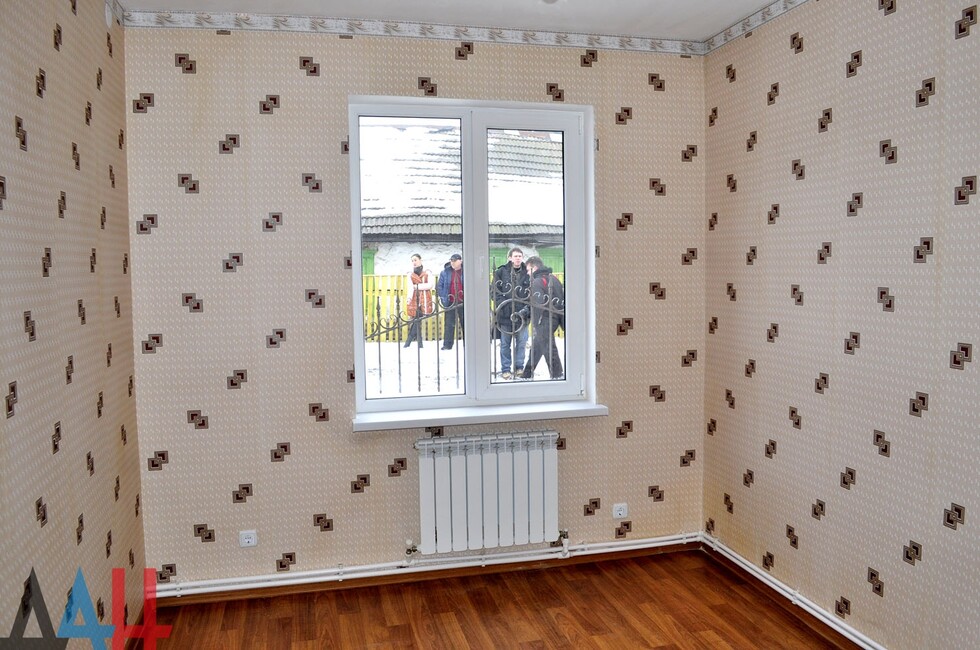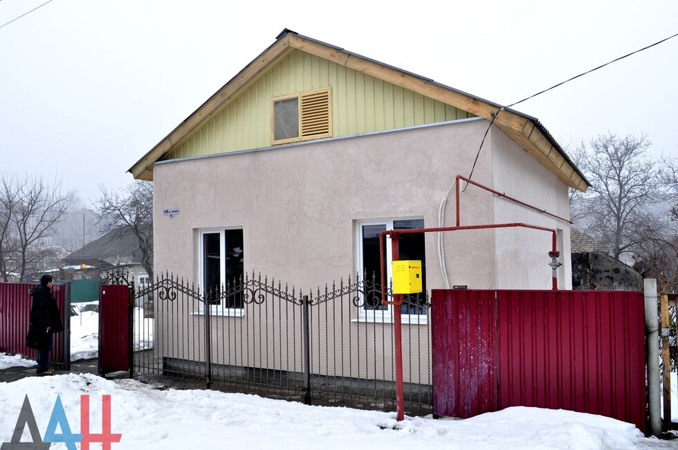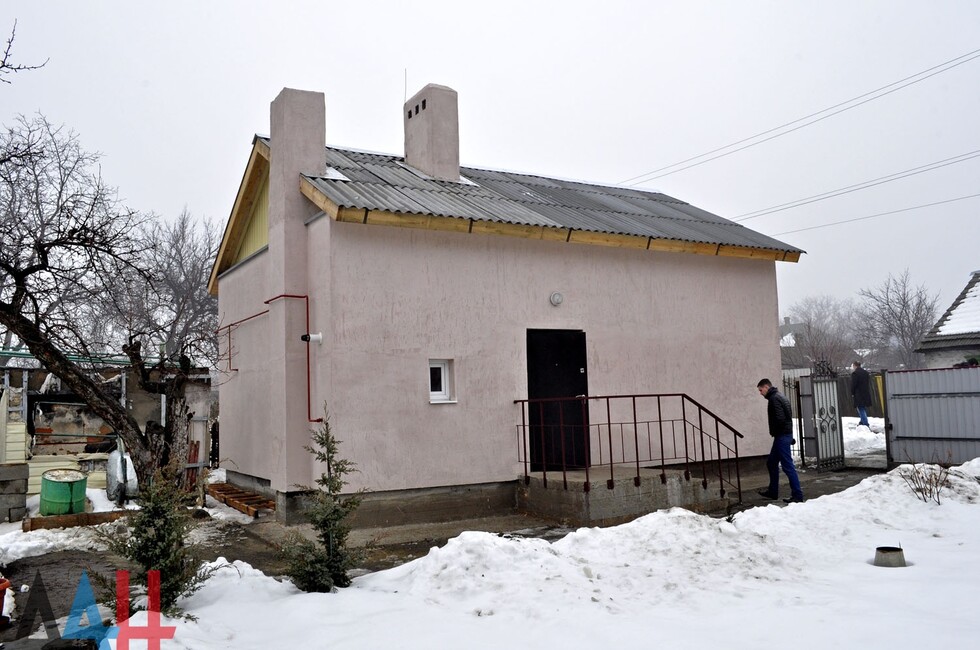 Дом расположен по улице Тимирязева на восточной окраине города. К зданию подведен свет и система водоснабжения, установлен угольный котел и сантехника. За счет фонда Главы ДНР закуплена мебель и бытовая техника: телевизор, холодильник, стиральная машинка, микроволновая и электрическая печи.