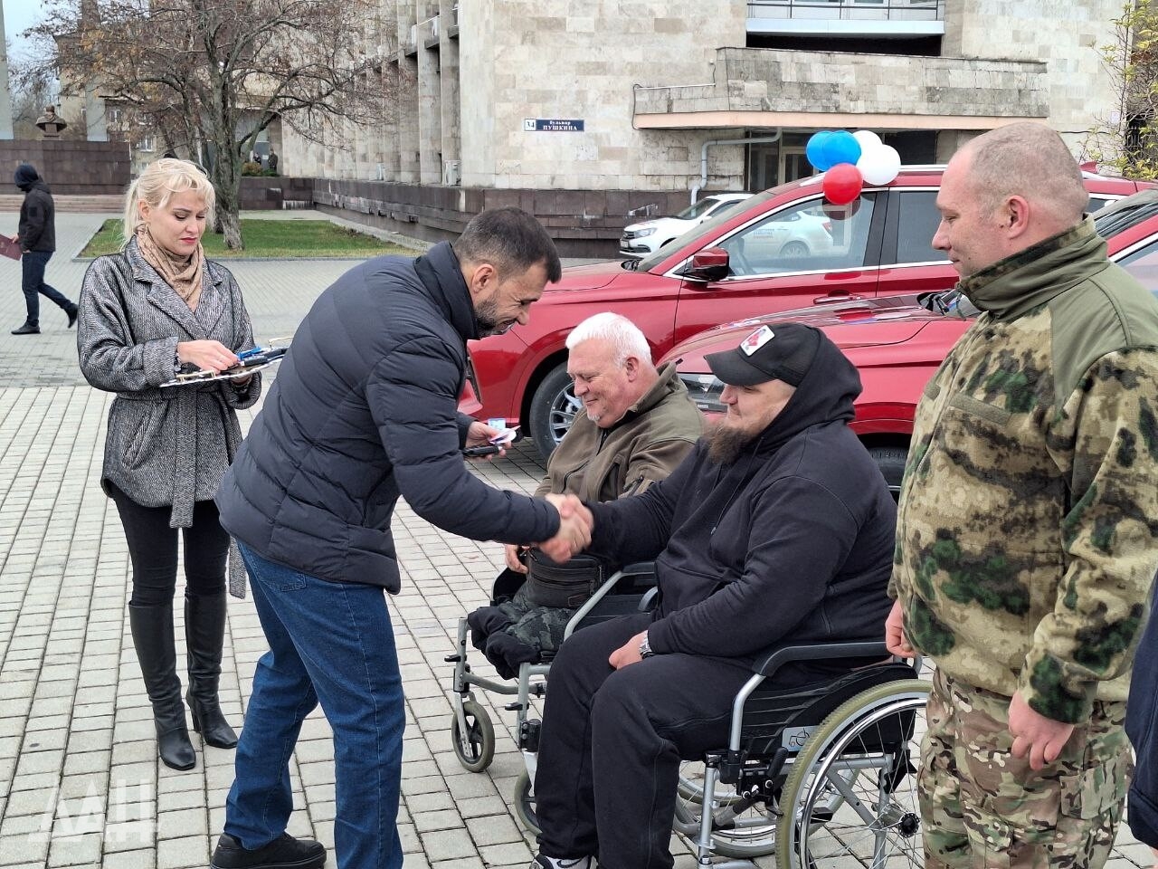«Это взаимодействие идет в рамках государственной программы, в рамках господдержки, имеется в виду, в рамках работы фонда „Защитники Отечества“. Она действительно ощутима, важна, чтобы упростить, улучшить жизнь. Что уж там говорить — с машиной легче», — обратился Пушилин к собравшимся.