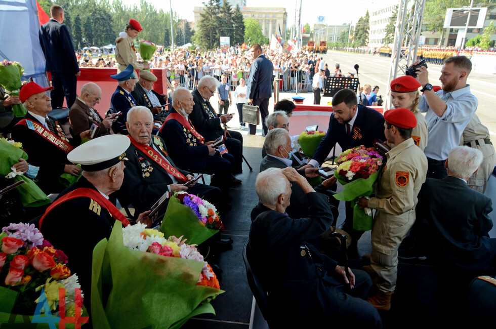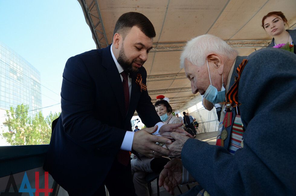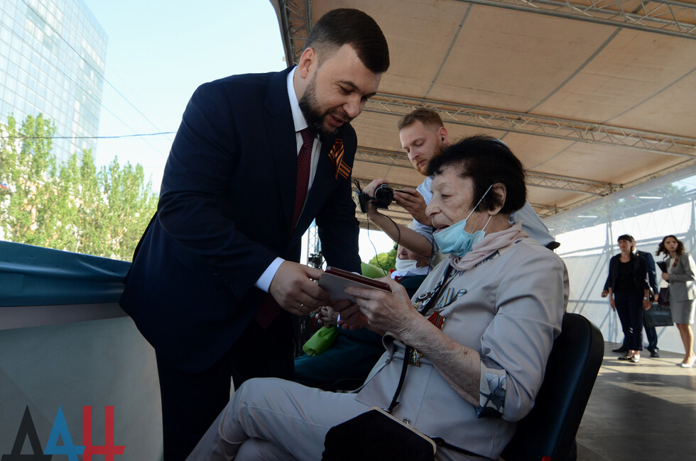 Донецк, 24 июн - корр. ДАН. Глава ДНР Денис Пушилин наградил ветеранов Великой Отечественной войны медалями к юбилею Победы. Вручение состоялось в столице перед началом военного парада.