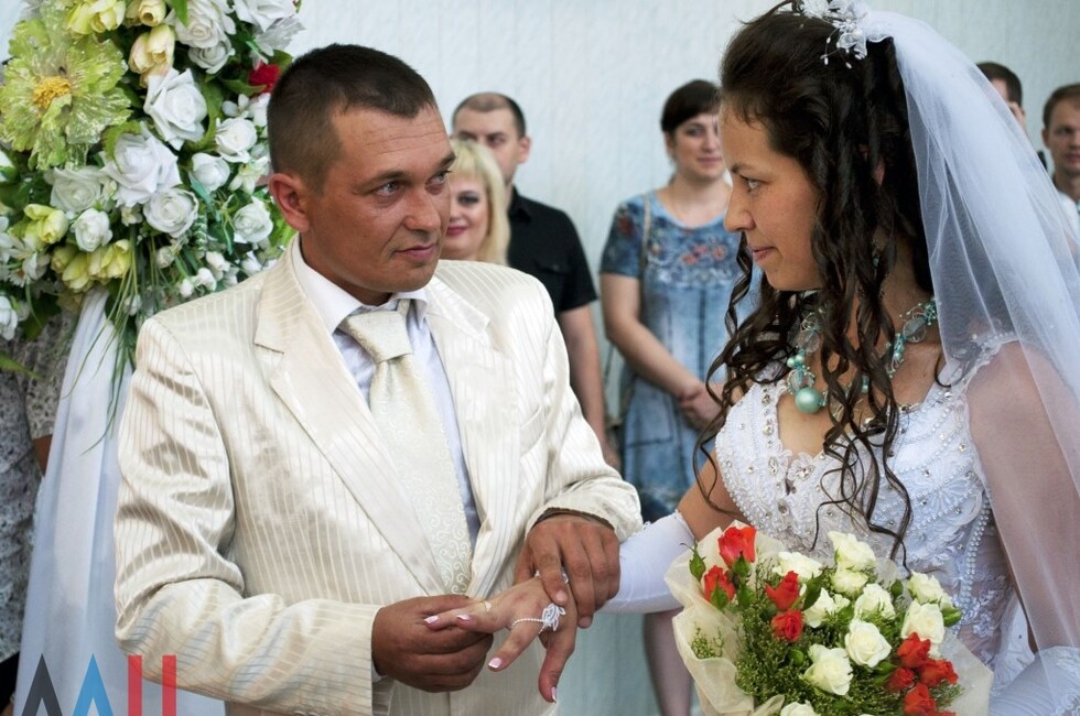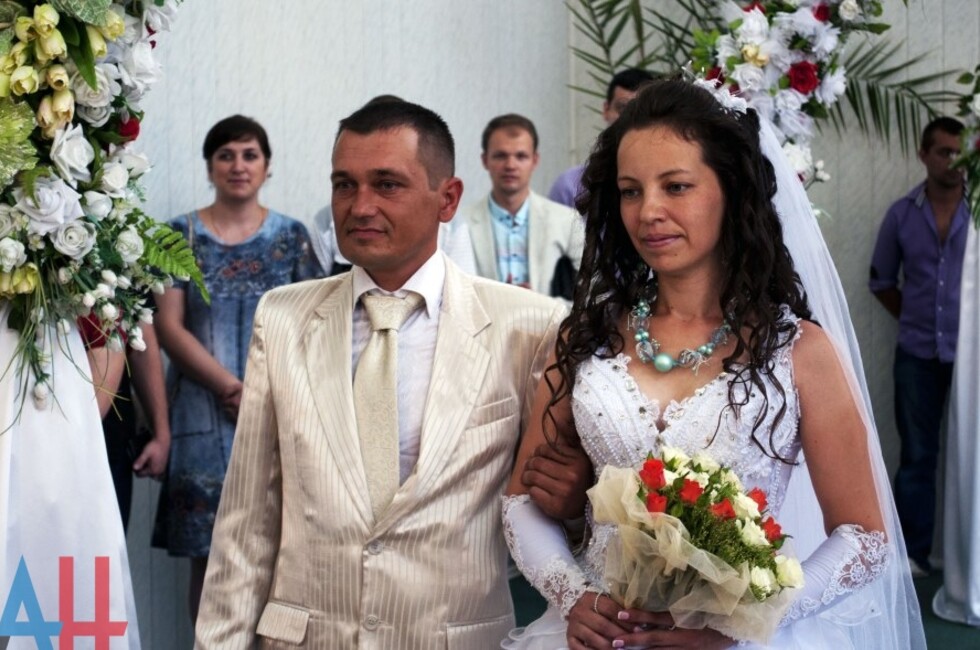 Церемония регистрации брака и выдачи молодоженам первого свидетельства республиканского образца состоялась в городском Дворце бракосочетания в Макеевке. В торжественном мероприятии приняли участи руководитель администрации города Юрий Покинтелица, представители районных властей, родственники и друзья новобрачных. *рб*гс*мк*нк