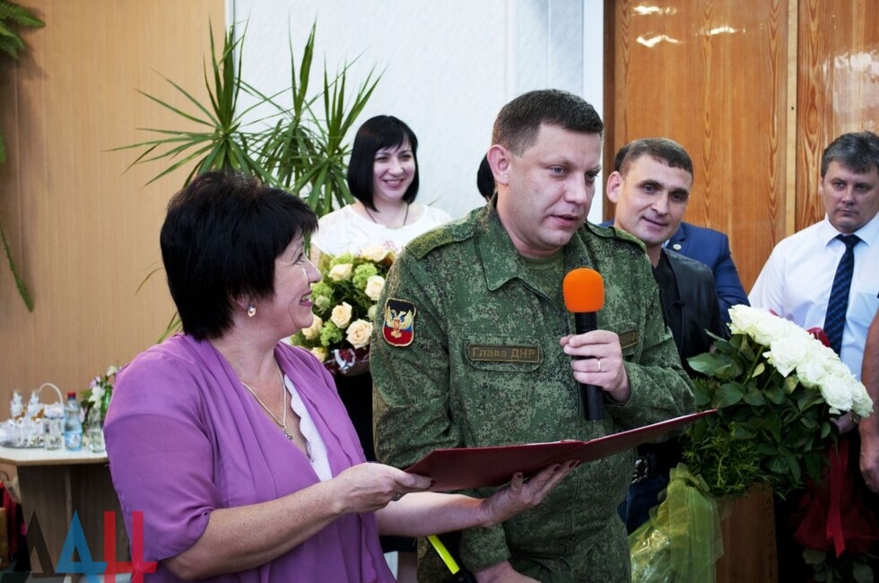 Макеевка, 29 июл – корр. ДАН. Глава ДНР Александр Захарченко торжественно вручил молодоженам из Макеевки первое свидетельство о браке республиканского образца. Документ был зарегистрирован и выдан сегодня Татьяне Германюк и Алексею Коняхину.