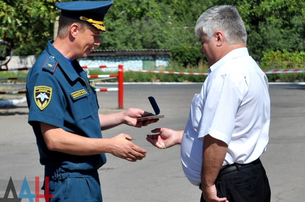 Торез, 27 авг – ДАН. Министр по чрезвычайным ситуациям ДНР Алексей Кострубицкий наградил сегодня сотрудников государственного военизированного горноспасательного отряда и департамента ГВГСС Тореза медалями за достижения в труде.