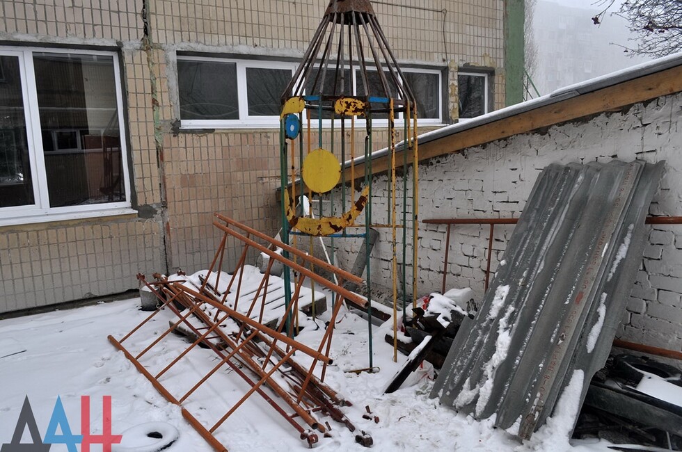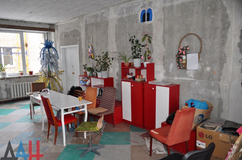 «В сентябре 2014 года в этот детский сад было прямое попадание снаряда. В результате было разрушено одно крыло здания, полностью выгорела крыша. Стены и крыша восстановлены, – рассказал в беседе с журналистами Наумец. – Но из-за того, что здание слишком долго простояло без кровли, появилась необходимость в дополнительных работах. По итогам проведенной инспекции было принято решение провести в здании капитальный ремонт».