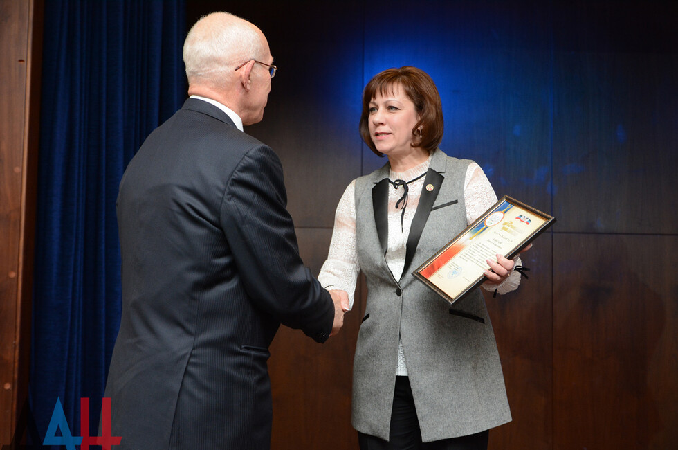 После вступительного слова спикер НС вручил благодарность коллективу Донецкой организации инвалидов «Новая жизнь» за успехи в улучшении качества жизни людей с ограниченными возможностями. Награду получил её руководитель, депутат НС Ярослав Лисобей.