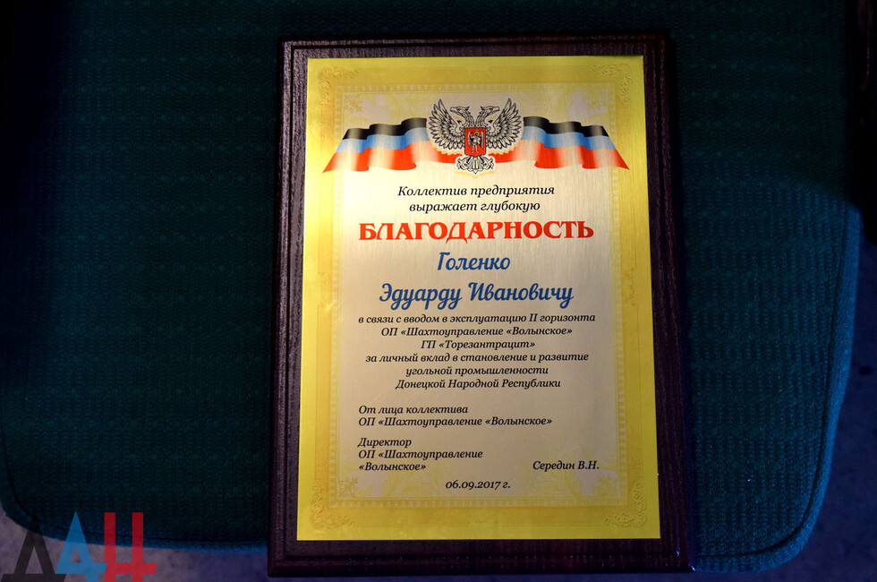 На церемонии открытия побывали министр угля и энергетики Республики Эдуард Голенко, председатель Федерации профсоюзов Максим Паршин и другие. «Это единственная в ДНР крутопадающая шахта. Жизнь ее длинная и долгая, и оценивается в более чем 25 лет», - сказал журналистам глава Минуглеэнерго.