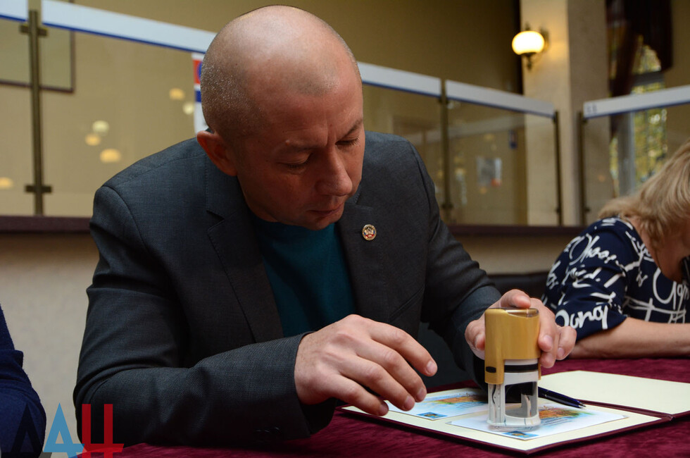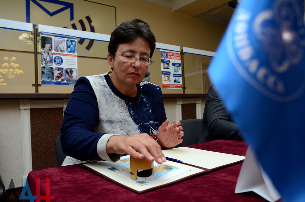 На мероприятии присутствовали глава администрации Ворошиловского района Донецка Владислав Латынцев, директор почтамта Кристина Тарасенко, филателист, краевед Владимир Захаров.