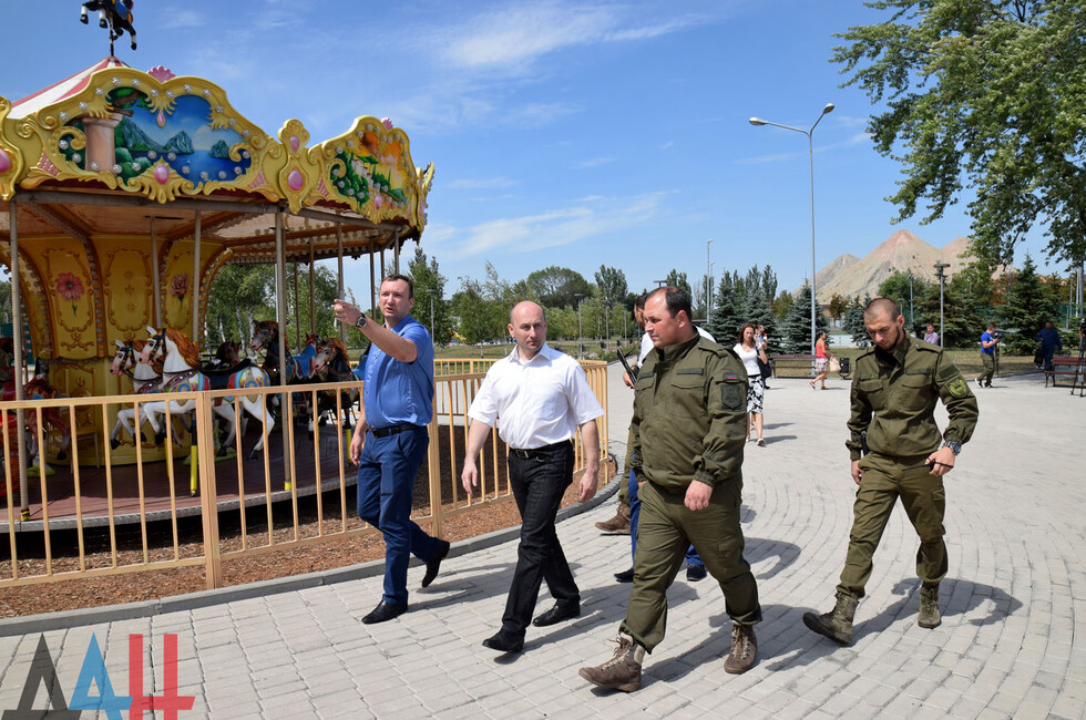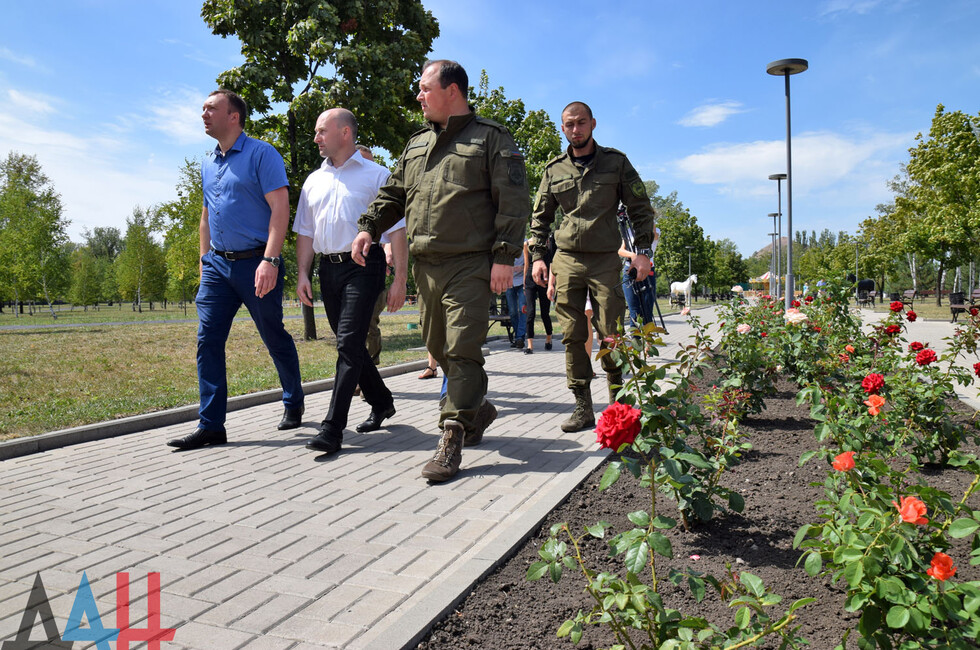 Продолжилась поездка экскурсией по парку имени Петровского, где гости осмотрели следы украинских обстрелов и полюбовались цветниками, в высадке которых в апреле этого года принимал участие Глава ДНР Александр Захарченко. После этого делегация посетила музей войны, расположенный в одной из местных школ.