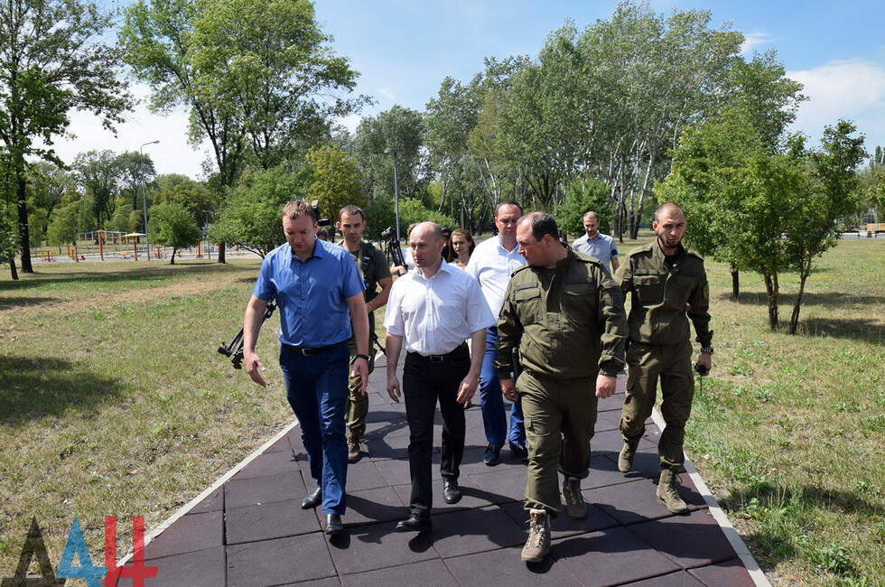 Донецк, 16 авг – корр. ДАН. Заместитель председателя Совета министров ДНР Дмитрий Трапезников и российский публицист Николай Стариков посетили сегодня прифронтовой Петровский район Донецка, где оценили результаты восстановления местного плавательного бассейна. Спортивное сооружение было повреждено обстрелами со стороны ВСУ в 2014-2015 годах.