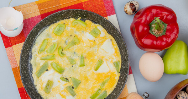 Готовьте на минимальном огне и очень медленно. При слабом нагреве омлет пропекается полностью, хорошо держит форму, становится плотнее и заметно вкуснее. Сильный огонь — главный враг любого омлета.