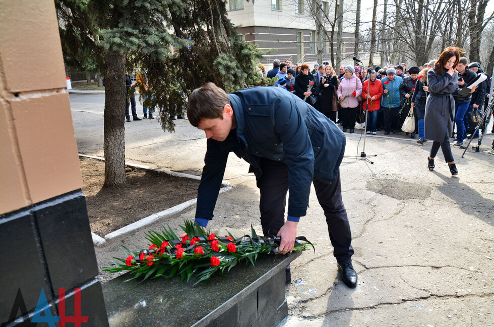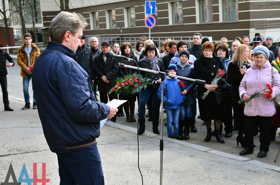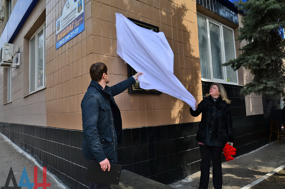 Донецк, 15 мар – корр. ДАН. Мемориальная доска с именами 12 погибших за время конфликта в Донбассе работников коммунальных служб ДНР появилась сегодня в столице Республики. Памятная табличка установлена на фасаде здания по улице Университетской, где до войны долгие годы находилось управление ЖКХ Донецкой области.