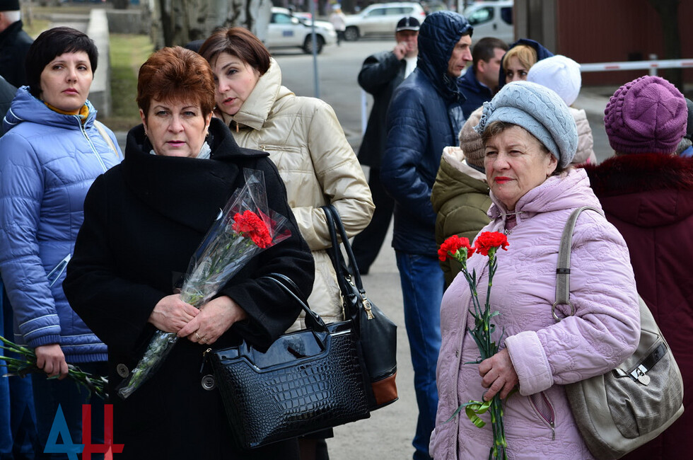 На доске имена слесарей, сварщиков, водителей троллейбусов, машинистов, монтеров, дворников, контролеров и мастеров участков предприятий. Их объединяет одно – эти люди стали жертвами украинской агрессии. Пенсионерка Валентина Басова пришла почтить память погибшего брата – электрика котельной Киевского района Донецка.