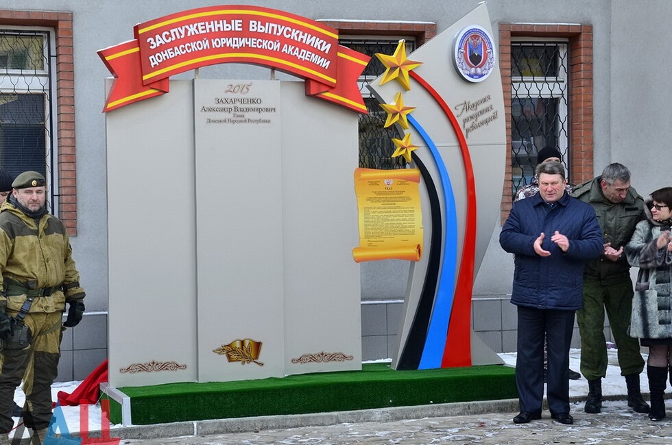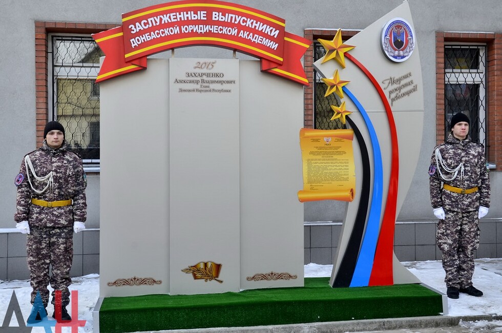 Донецк, 26 янв – корр. ДАН. Стела «Заслуженные выпускники Донбасской юридической академии» появилась в столице Донецкой Народной Республики. Торжественное открытие памятного знака состоялось во дворе учебного заведения сегодня – в преддверии второй годовщины с момента создания академии.