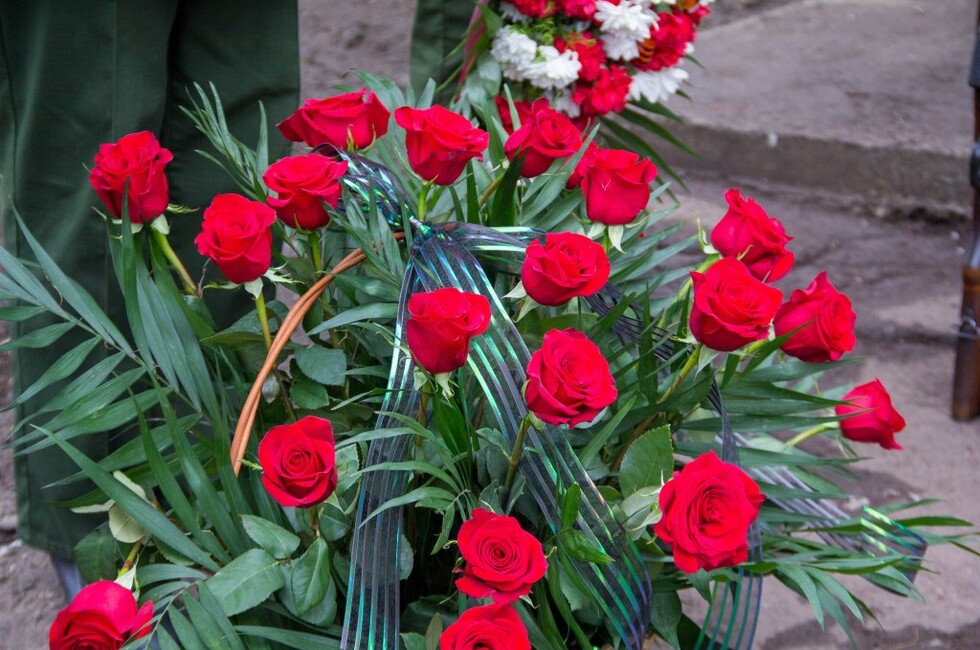 Мемориальная доска установлена на фасаде школы. Память военнослужащего почтили минутой молчания и возложили к мемориалу цветы.