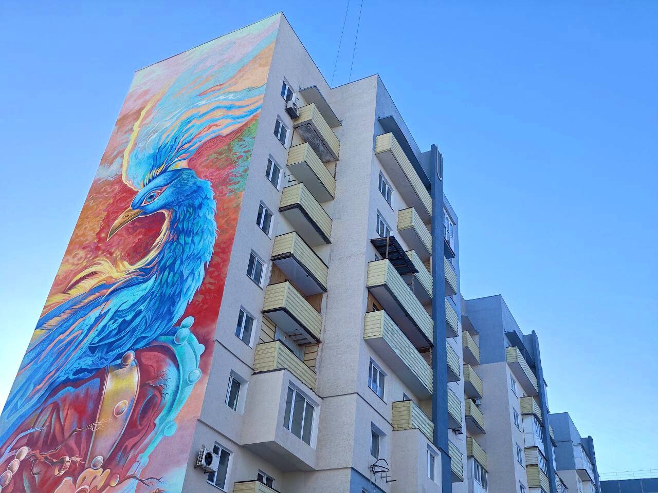 Финальным штрихом стал мурал — фасад украсили яркими птицами.