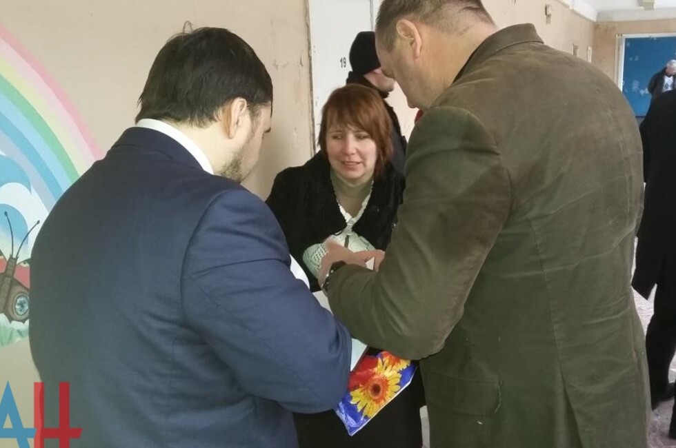 Пушилин также посетил в Дебальцево школу №1, где передал более 200 подарков для детей города.