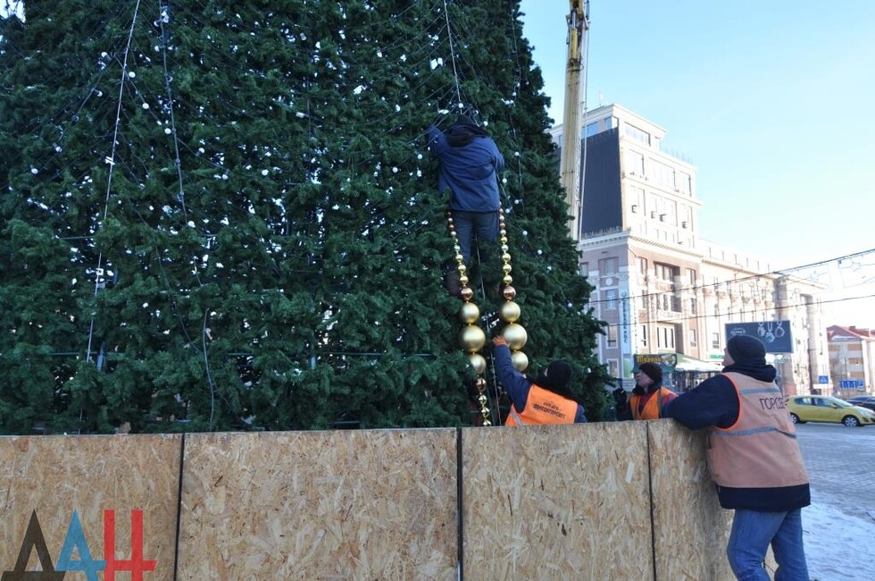 Напомним, что главная елка Донецкой Народной Республики была открыта на площади Ленина 23 декабря 2016 года. Высота елки составила 23 метра, она была украшена светодиодной гирляндой длиной более 3 км. Цвет украшений — сине-белый. *ев*нк
