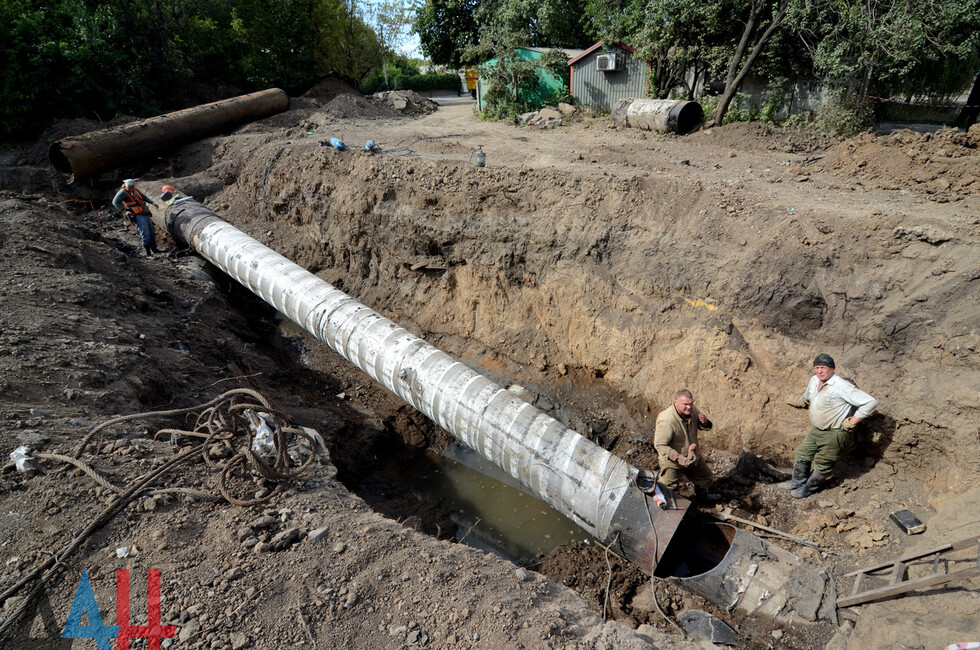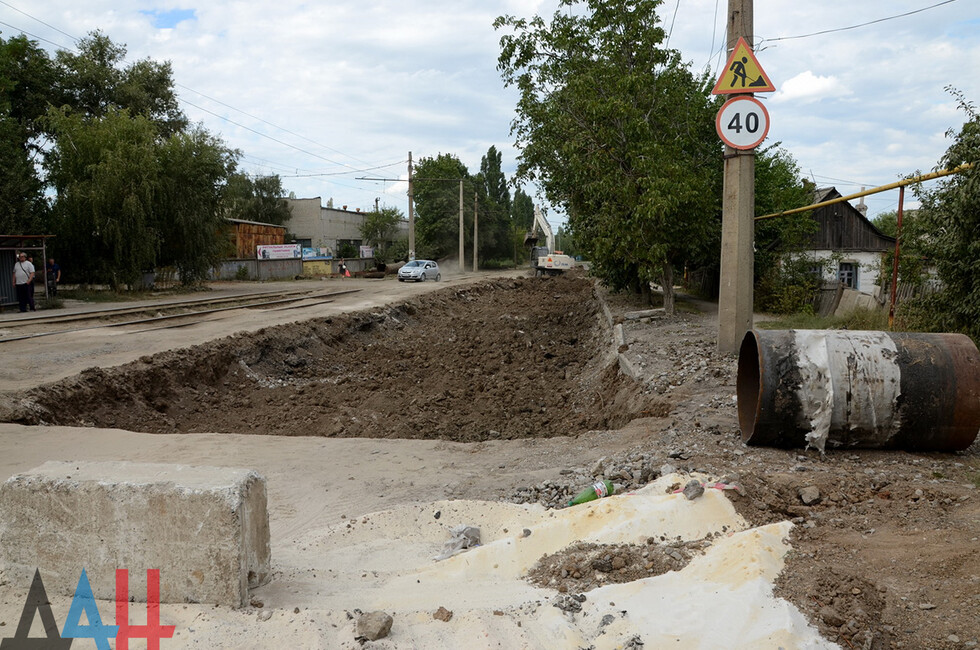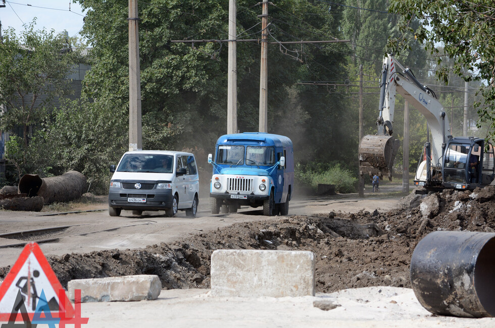 Напомним, что 29 мая на пересечении улиц Текстильщиков и Афанасьева в Кировском районе Донецка из-за порыва подземного коллектора диаметром 1000 мм произошел провал грунта на двух участках автодороги. Происшествие стало следствием износа коммуникаций. Трубам – порядка 50 лет. В этот же день специалистами государственного предприятия «Вода Донбасса» был сделан вывод о необходимости замены аварийного участка. Работы с июня месяца проводили специалисты данного предприятия. Выполнение осложнялось значительной глубиной залегания коллектора, большим объемом подготовительных работ, а также прохождением данного участка по проезжей части дороги, в том числе по трамвайным путям. *ха*дя*гж