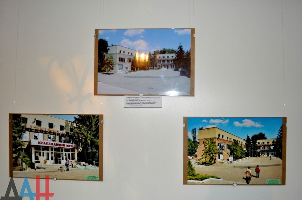 Экспозиция, которая будет работать до 1 декабря, включает фотографии, на которых музей запечатлен в довоенном состоянии и уже после обстрелов, и предметы из музейных фондов, спасенные из-под образовавшихся при разрушении здания завалов. Некоторые экспонаты удалось восстановить, другие реставрации уже не подлежат. Также выставлены обломки ракет и снарядов, которые Украина использовала для ударов по жилым районам, социальным объектам, учреждениям культуры Донецка.