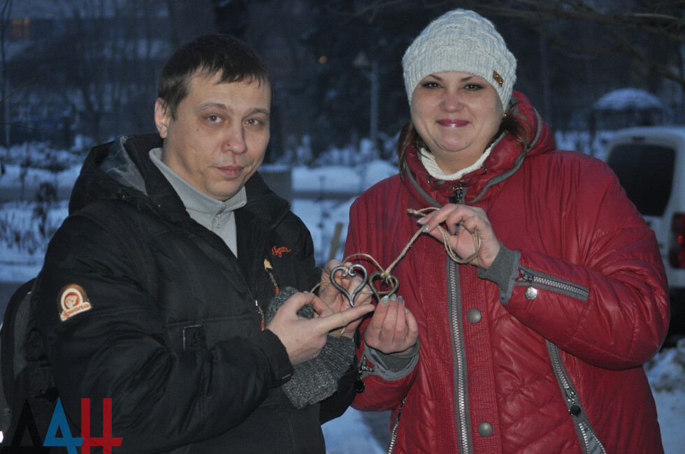 «Сегодня мы проводим очередную, уже одиннадцатую акцию, посвященную 14 февраля – Дню всех влюбленных. Эта акция для романтиков, которые не ленятся прийти в столь ранний час в парк кованых фигур, где в это время плодоносит коваными сердечками Древо счастья, – сказал корр. ДАН председатель Гильдии кузнецов Донбасса Виктор Бурдук. – В этом году мы по ряду причин не куем сердца под открытым небом, но традицию решили не нарушать».