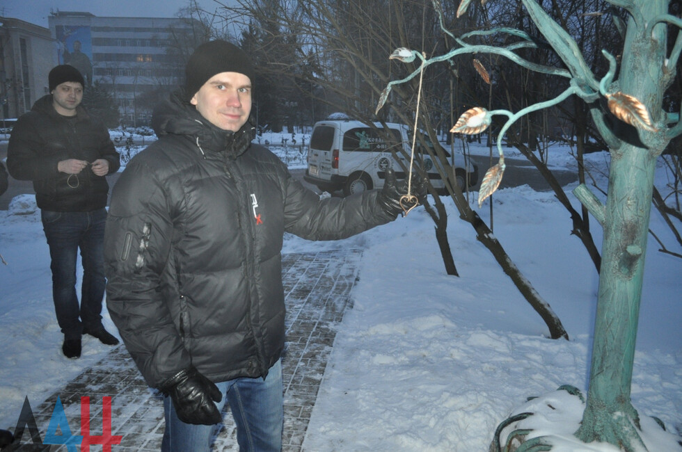 «Моя любимая увидела в интернете объявление, и нам, конечно, захотелось прийти, чтобы снять свои сердца с Древа счастья. Считаю, что в это непростое время людям нужны такие интересные акции, которые делаются во имя добра и любви», – сказал корр. ДАН житель Донецка Сергей.
