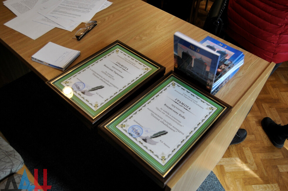 Донецк, 2 апр – ДАН. Союз писателей ДНР сегодня наградил победителей онлайн-конкурса «Поэзия объединяет», который прошел в рамках гуманитарной программы по воссоединению народа Донбасса. Церемония награждения состоялась в центре Донецка, в конференц-зале писательской организации.