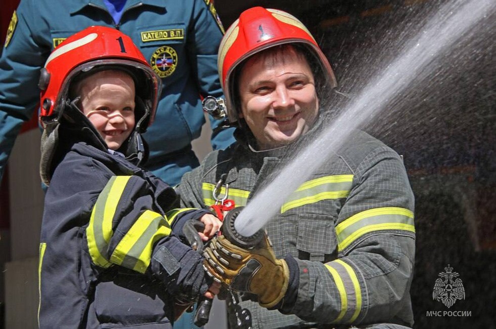 Мальчика «устроили» на первую работу в одну из пожарных частей Донецка. Он примерил на себя спасательную одежду, каску, сапоги и вместе со своими рабочими товарищами по сигналу тревоги отправился на условной вызов, где принял непосредственное участие в ликвидации «пожара». После поездки он также примерил на себя офицерскую фуражку одного из сотрудников МЧС ДНР.