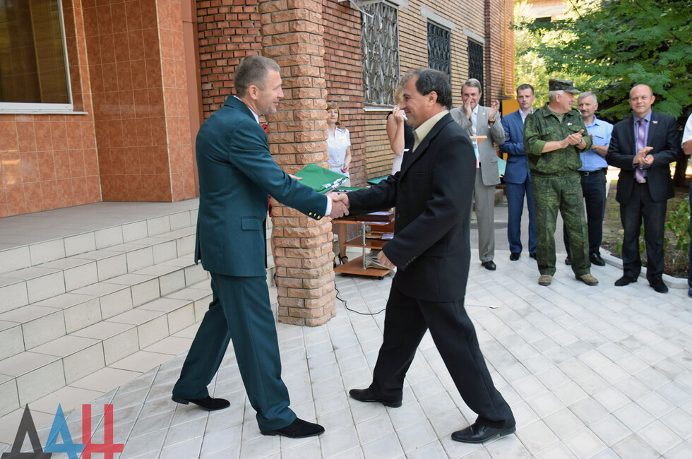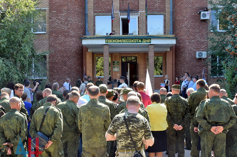 Поздравить их пришли председатель Государственного комитета лесного и охотничьего хозяйства ДНР Алексей Шебалков, и.о первого заместителя министра угля и энергетики Республики Анатолий Нестеренко, депутат Народного Совета от фракции «Донецкая Республика» Александр Яровиков, член правления общественной организации « Оплот Донбасса», парламентарий Александр Куренков, глава администрации Ленинского района Донецка Олег Беляев. Всего на площадке перед зданием Государственного комитета лесного и охотничьего хозяйства в столице ДНР собрались более ста человек.