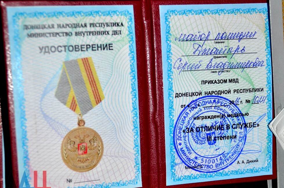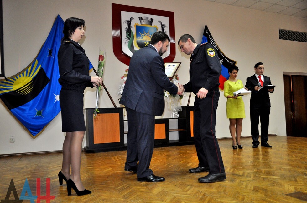 Начальник макеевского управления МВД полковник полиции также поздравил коллег с праздником. Он наградил четверых сотрудников нагрудными знаками «За отличие в службе» третей степени.